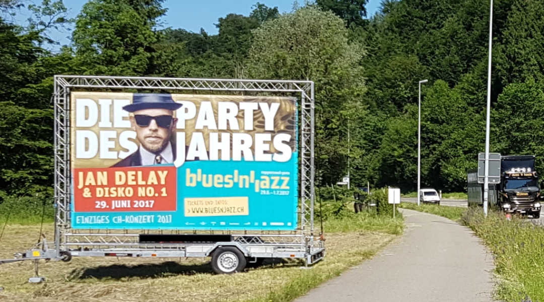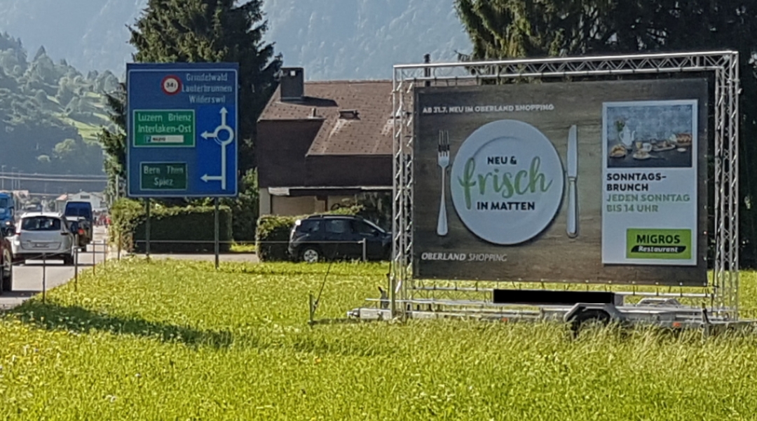 Der Grossplakat-Werbeanhänger kann grundsätzlich überall platziert werden, sofern die entsprechenden Richtlinien eingehalten sind und die Bewilligung der Behörden vorliegen.
