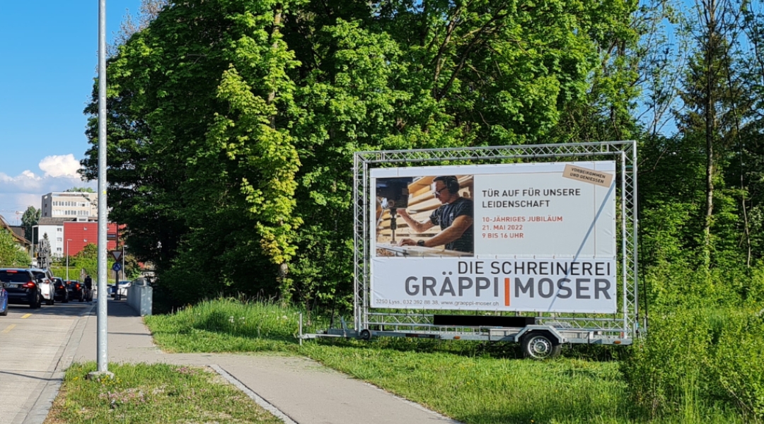 Wir empfehlen, eine Werbe-Kampagne mit dem Grossplakat-Werbeanhänger frühzeitig aufzugleisen.